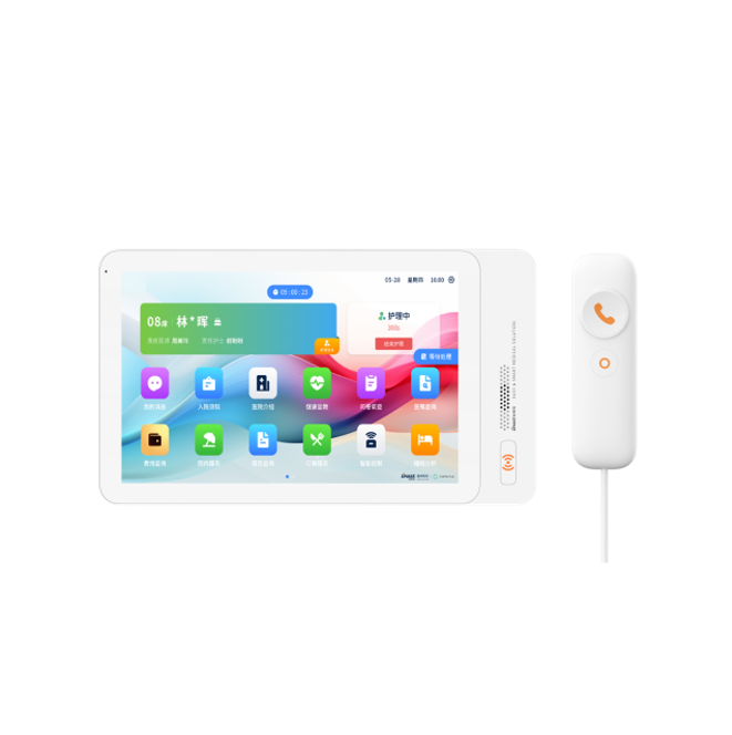 安裝在病床頭的交互設(shè)備機(jī),代替?zhèn)鹘y(tǒng)紙質(zhì)卡。產(chǎn)品支持呼叫對(duì)講、為住院患者提供病例查詢(xún)、狀態(tài)自動(dòng)提醒等護(hù)理需求等。