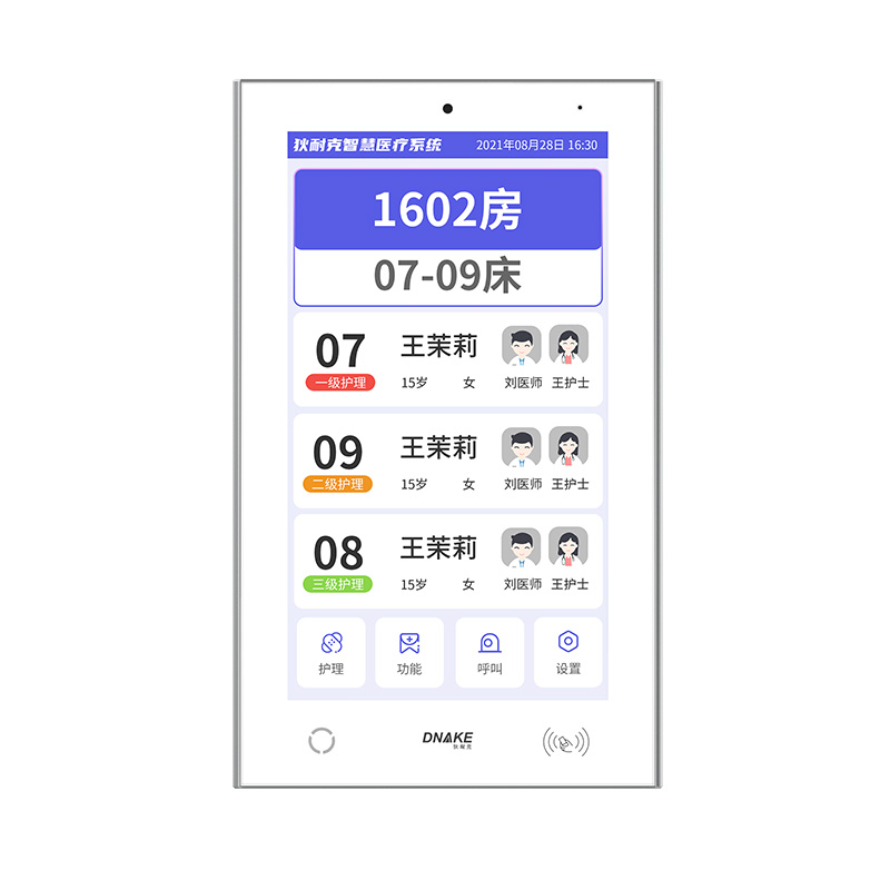 設(shè)置在病房門口的終端設(shè)備,主要用于顯示病房相關(guān)信息,內(nèi)置簡易醫(yī)護工作站,支持病房床位一覽、患者動態(tài)跟蹤、呼叫對講、增援求救等多種呼叫類型,信息齊全,及時響應(yīng)醫(yī)護需求,實現(xiàn)智能化醫(yī)護管理。